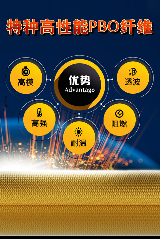 特种高性能PBO纤维具备高强、高模、耐温、阻燃、透波五大特性,拉伸强度达5.8GPa,为芳纶的2倍,拉伸模量达280GPa,热分解温度高达650℃以上,比芳纶高100℃,极限氧指数达到68,在火焰中也不燃烧,因其优异的产品性能,被称为21世纪的“超级纤维”,可应用于国防军工和航空航天等领域,能够大幅度提升武器装备的性能和可靠性,尤其是对武器装备的小型化、轻量化、高性能化及新型火箭、导弹、飞行器的透波、结构强度、隐身性能的提升起到不可替代的作用,属于关键性战略材料。